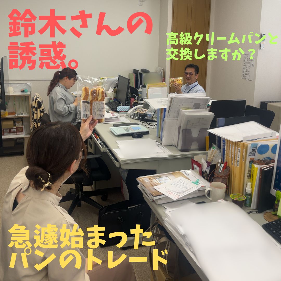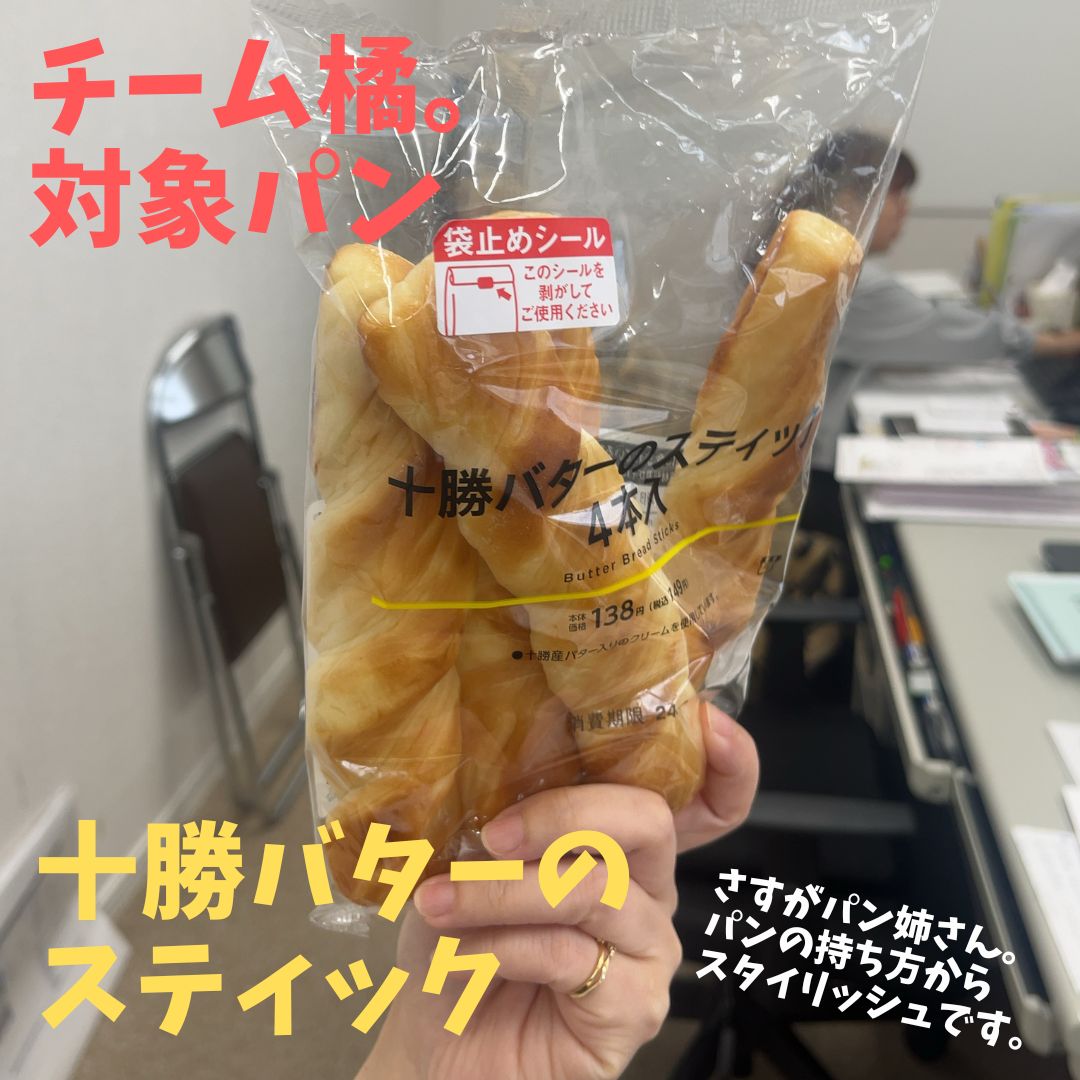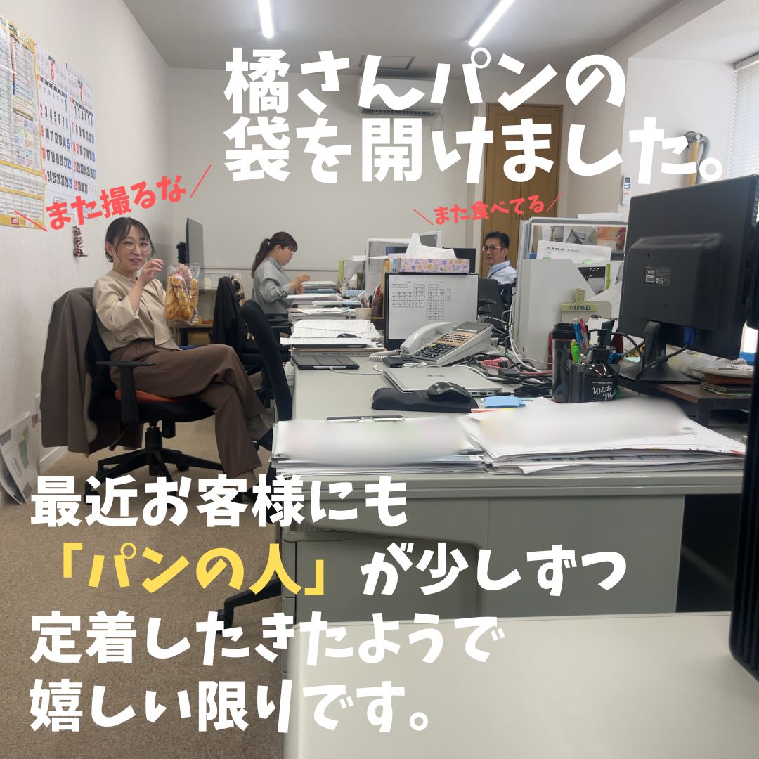 最近、橘さんのパン姉さんが定着しつつあるようです。 ぜひお打ち合わせの際には 「今日のパンは?」 と聞いてみて下さい。 毎日いろんなパン食べています。