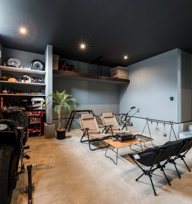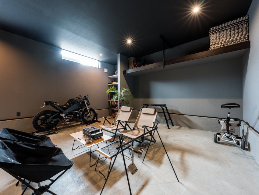 贅沢な趣味空間としてのガレージ付き平屋の家