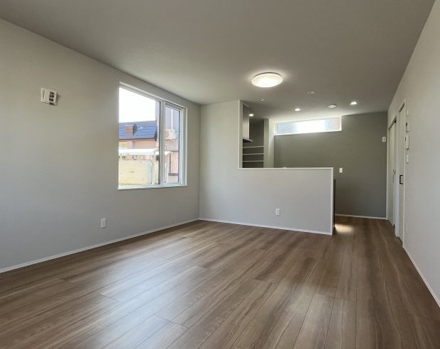 落ち着いたカラーリングのクロスで落ち着きのある空間となっています。LDKは15.7帖と家族でゆったりするのにちょうどいい広さとなっています。