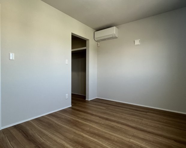 主寝室にはウォークインクローゼット完備です。壁の一部にはアクセントクロスを使用しているので、見た目にもちょっとこだわった落ち着いて就寝できる空間となっています。