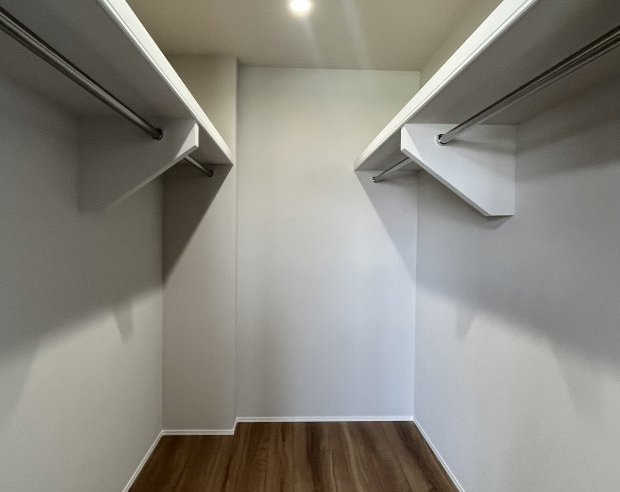 主寝室のウォークインクローゼットは3帖の広さ。ご夫婦のお洋服類を収納するには十分な広さとなっています。普段使いのお洋服以外にも季節物のお洋服もまとめてこちらに収納できる広さです。