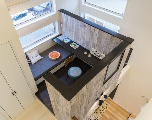 子どもの頃に憧れたツリーハウスのように宙に浮かせて、隠れ家的でありながら開放感もある書斎。家の中心にあるから家中どこにいても子供たちの声が届きます。
