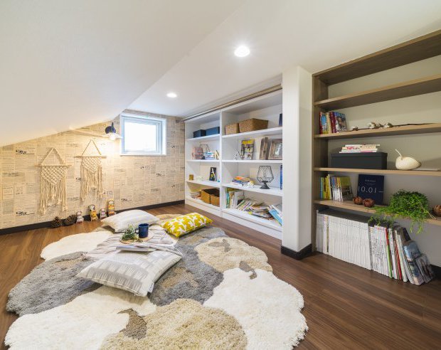 秘密の隠れ家のようなロフトは家族みんなで使えるファミリーライブラリーとなっています。