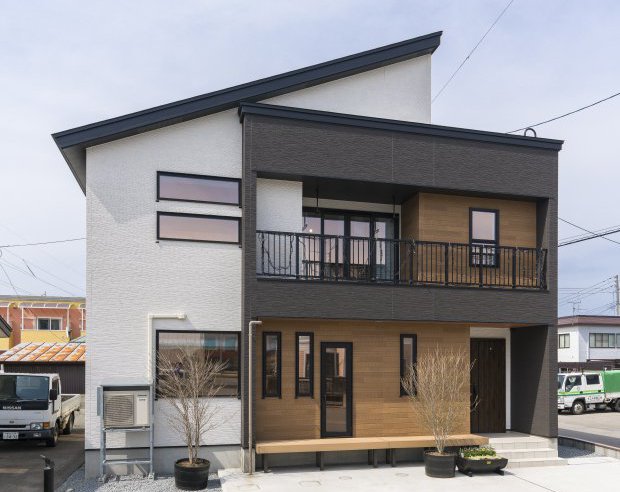 外観は白/黒/木目調をバランスよく配置したスタンダードな人気スタイルに。昼間と夜で変わる表情も必見です。