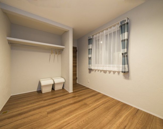 洋室の壁は珪藻土で消臭、調湿作用もあり、空気がきれいなお部屋でゆっくり自分の時間を過ごせます。こちらからも中庭を眺められるので、実際の広さ以上の広がりを感じられます。